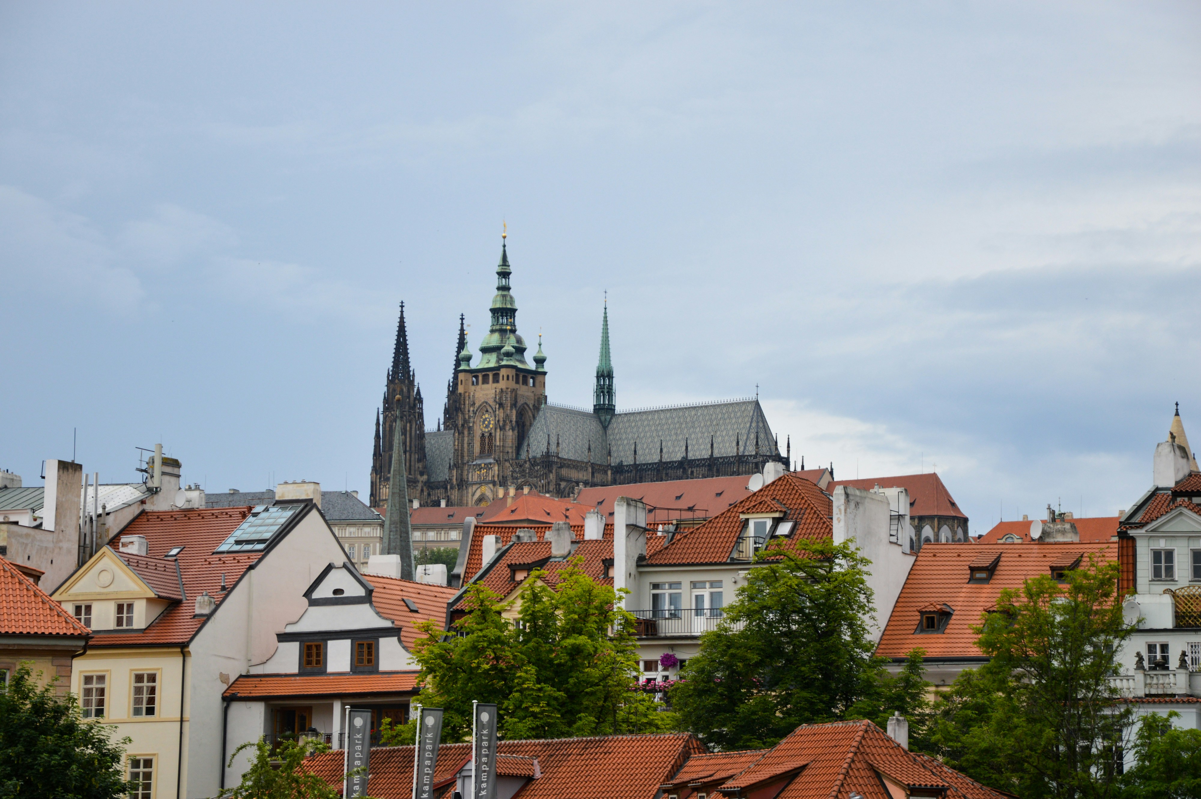Petřín Tower and Old Town Hall Tower offer elevated vantage points with paid entry. Strahov Monastery's upper courtyard is free and less crowded. Golden hour (5:00–6:00 PM) bathes the roofs in warm orange light. Bring a polarising filter to cut haze and deepen the sky.